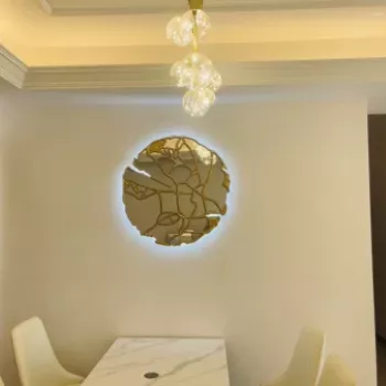 This wall mirror excels in any space where you want to add depth or need to reflect more light. It is particularly effective in smaller rooms or darker spaces where it can magnify natural light and open up the area. Its aesthetic appeal also makes it perfect for use in entryways to make a bold first impression or in main living areas where its beauty can be appreciated by all.